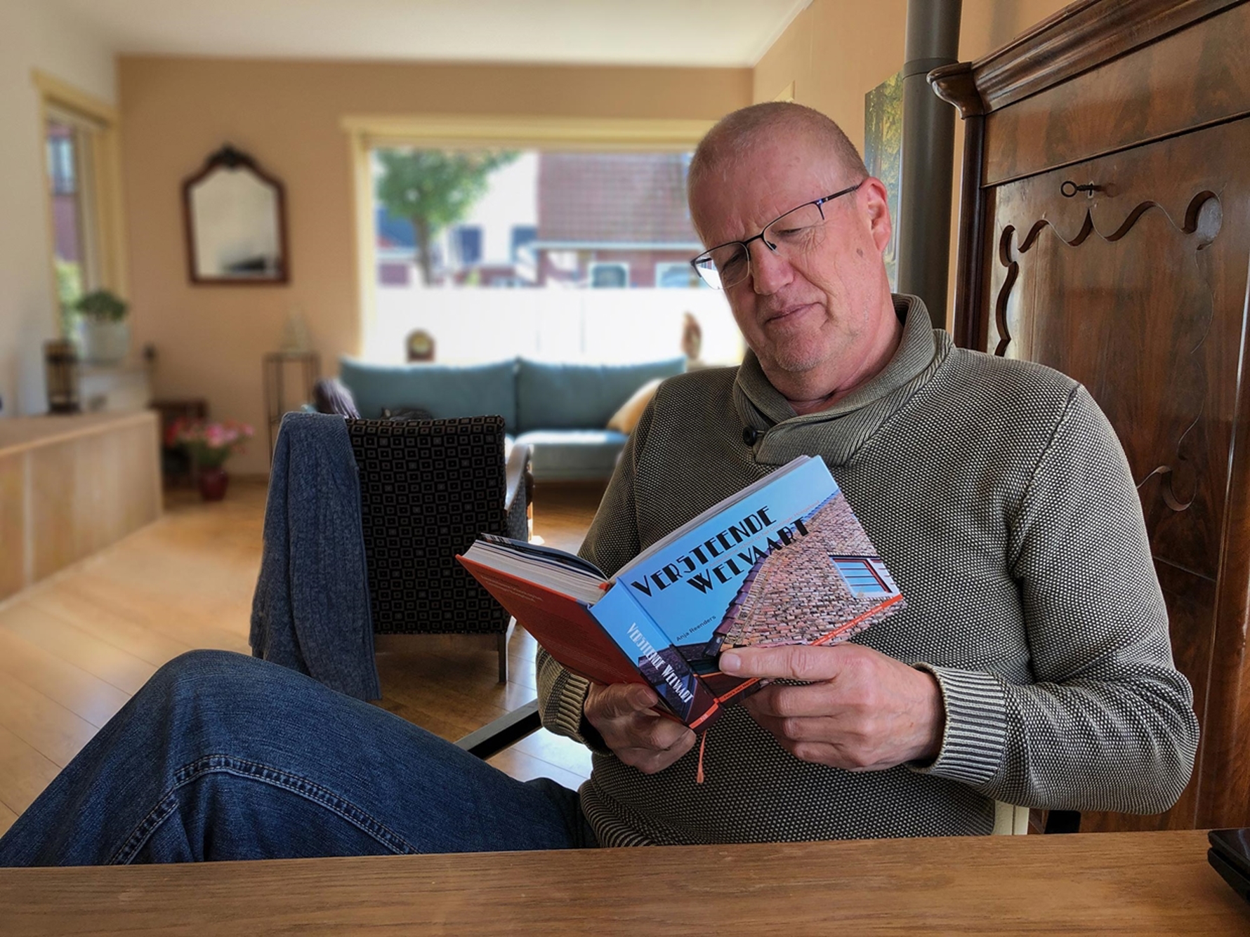 De keuze viel op Winsum en dan specifiek op een woning uit 1934, gebouwd in de stijl van de Amsterdamse School. Niet geheel toevallig in de straat waar zijn vrouw vroeger woonde. Jan was gelijk verkocht. Met klassieke muziek op de achtergrond vertelt hij bevlogen over zijn liefde voor de Amsterdamse School. Het naslagwerk ‘Versteende Welvaart’ van Anja Reenders wordt erbij gehaald om voorbeelden op het Groninger Hoogeland te laten zien. Het wordt een leerzaam middagje. “Die specifieke uitstraling; die combinatie van donkere en lichtrode stenen: ik vind het prachtig.”