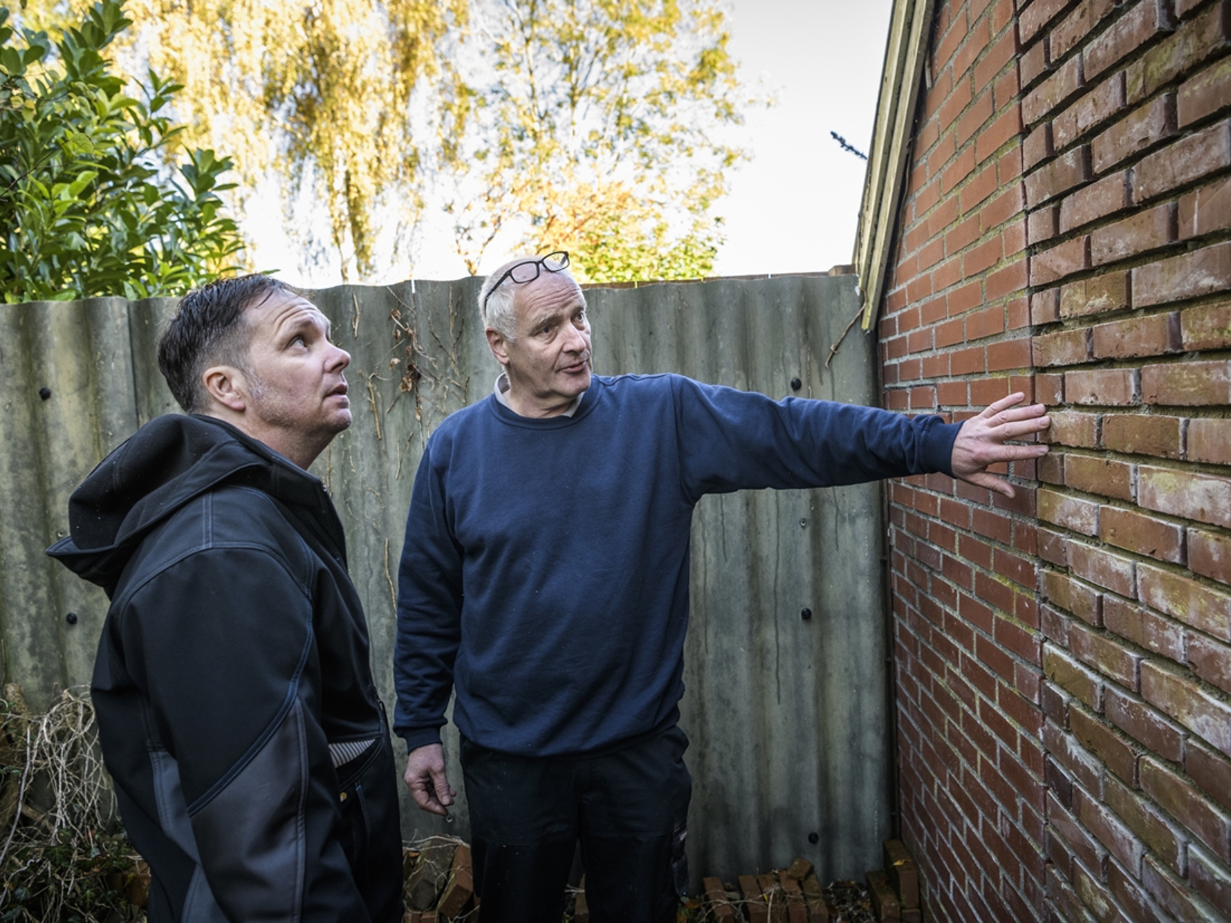 Maar hoe idyllisch het tafereel ook, de reden van het bezoek is dat allerminst. Naast de schade van de scheve schuur, zijn er nog tientallen scheuren genoteerd en vastgelegd. Zaakbegeleider Hoeksema legt uit hoe de procedure verloopt. “De deskundige adviseert ons nu over de vraag of de schade door de gaswinning kan zijn veroorzaakt of verergerd. Ik kan het u niet zeggen. Het adviesrapport krijgt u ook en daar kunt u op reageren. Als u wilt kan ik u daar dan meer over uitleggen.”